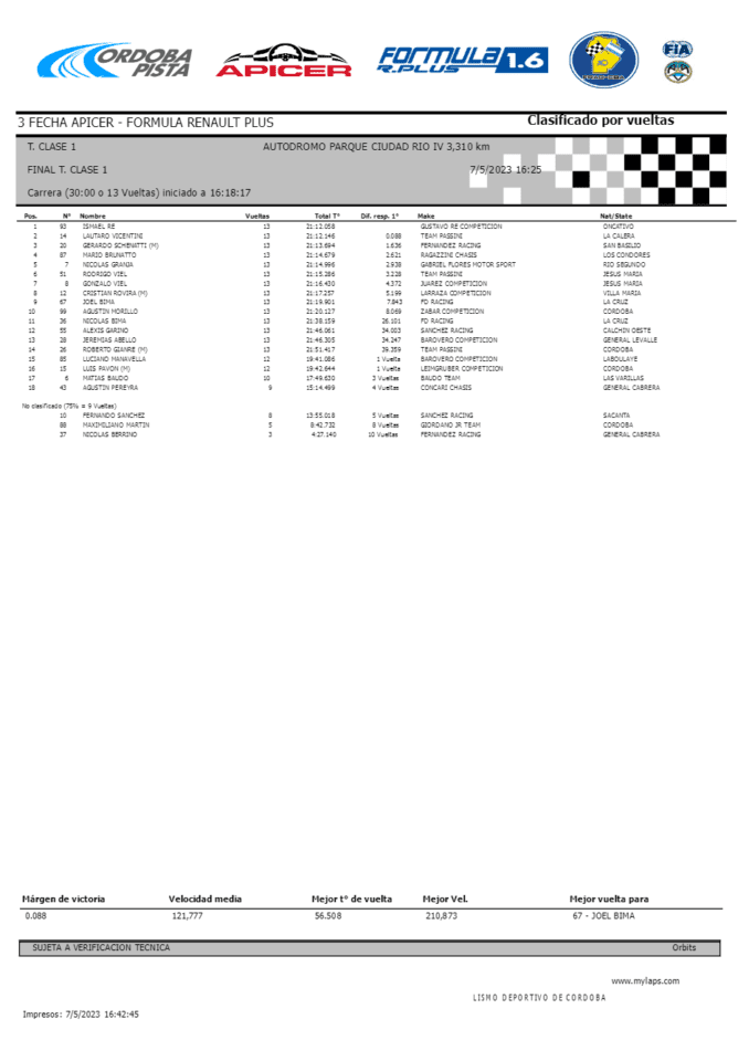 Del cuarto al décimo vieron la bandera a cuadros Spinazze, Jorge Paredes, Joaquín Hongn, Juan Picón, Emanuel Saboretti, Ignacio Vaira, y Diego Richarte.