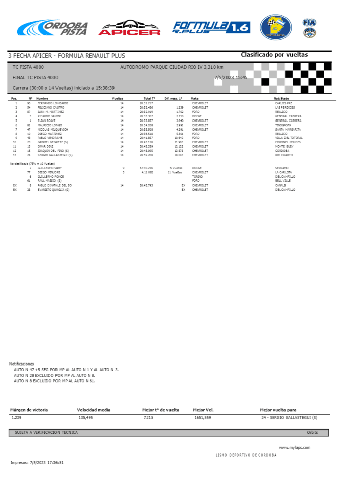 Cabe mencionar que la clasificación final quedó en suspenso.