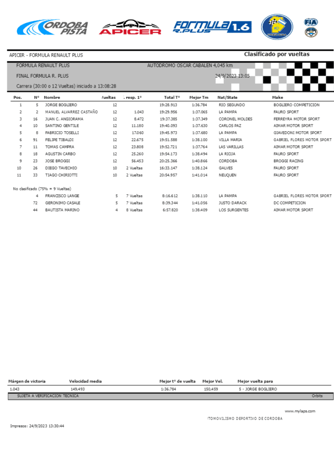 El domingo de la FR Plus también fue de Jorge Bogliero