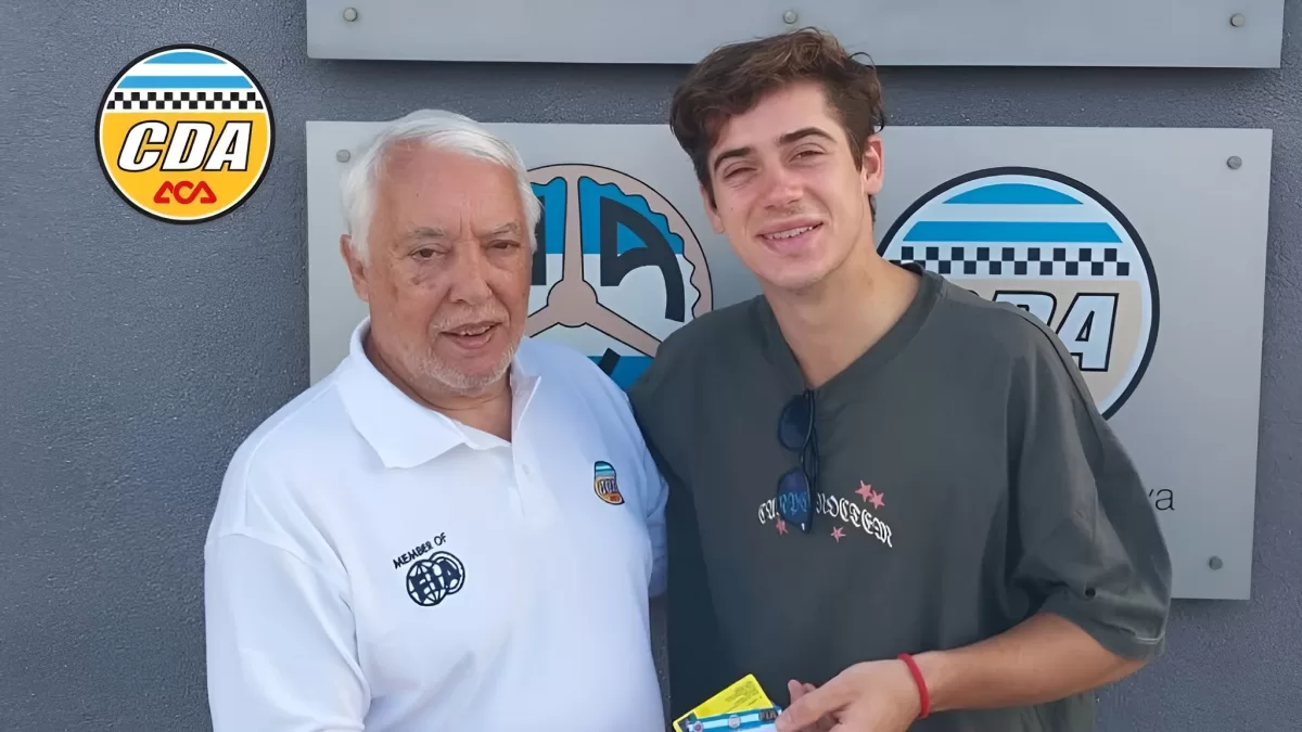 La Comisión Deportiva Automovilística (CDA) publicó en sus redes sociales la foto del momento en el que el piloto bonaerense de 21 años recibía de parte del presidente de la entidad, Eduardo Baca, la licencia correspondiente, avalada por la Federación Internacional del Automovilismo (FIA).