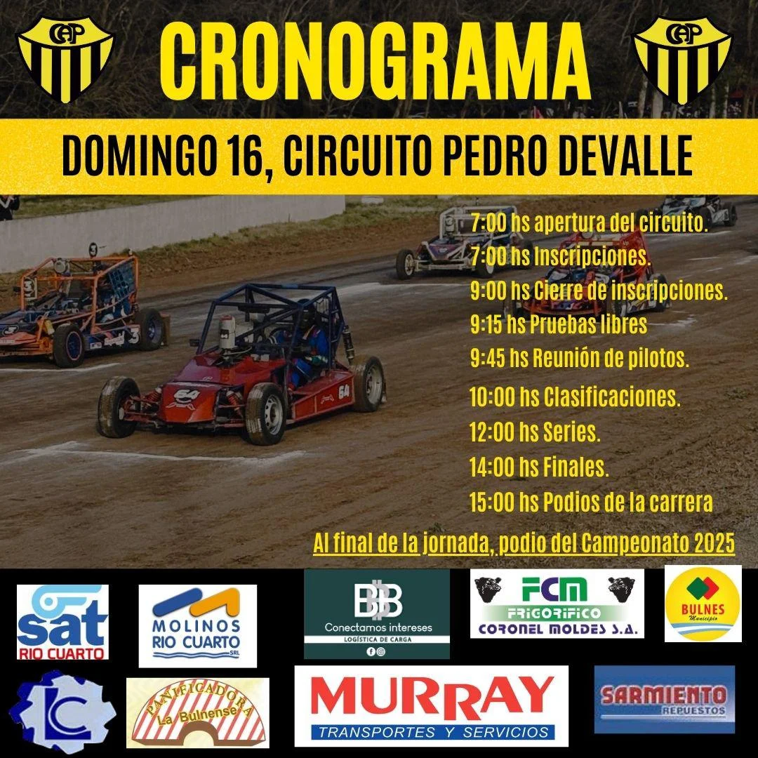 La Sub Comisión de Automovilismo del Club Atlético Peñarol de Bulnes, confirmó este sábado el cronograma de actividades para el Gran Premio Coronación del 48° Campeonato Regional Bulnense, que tendrá realización este domingo desde el Circuito «Pedro Devalle».
