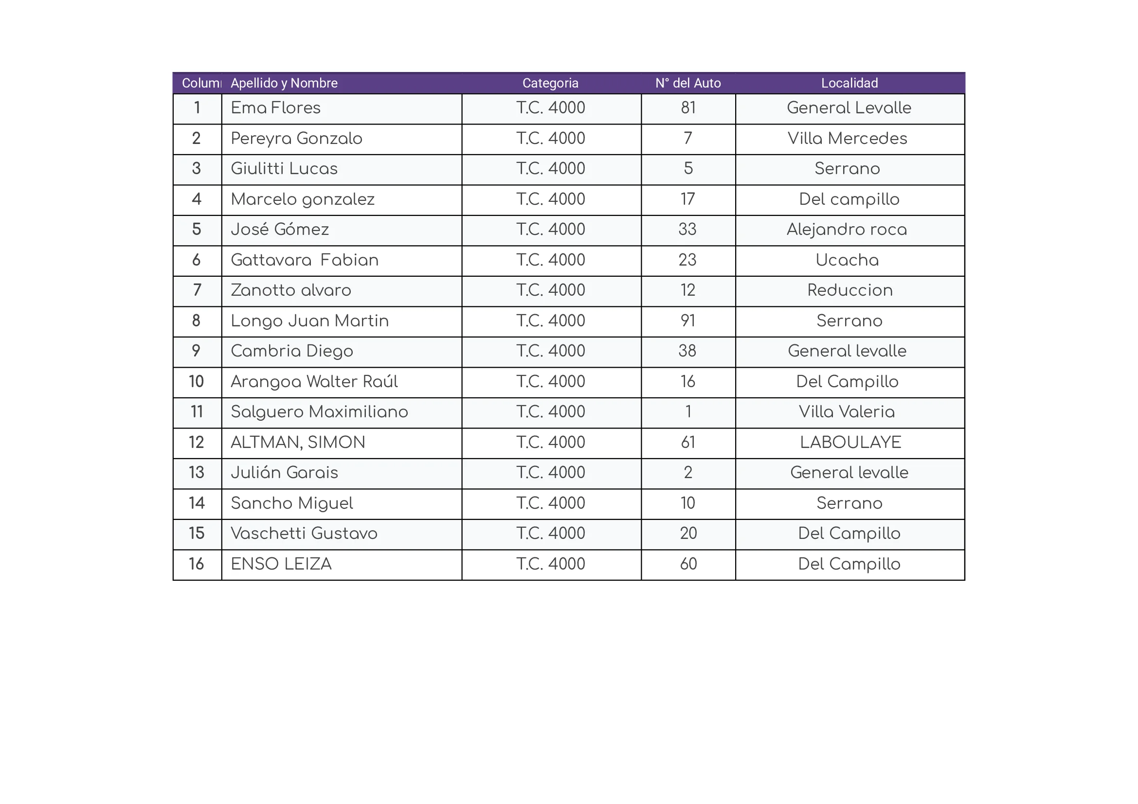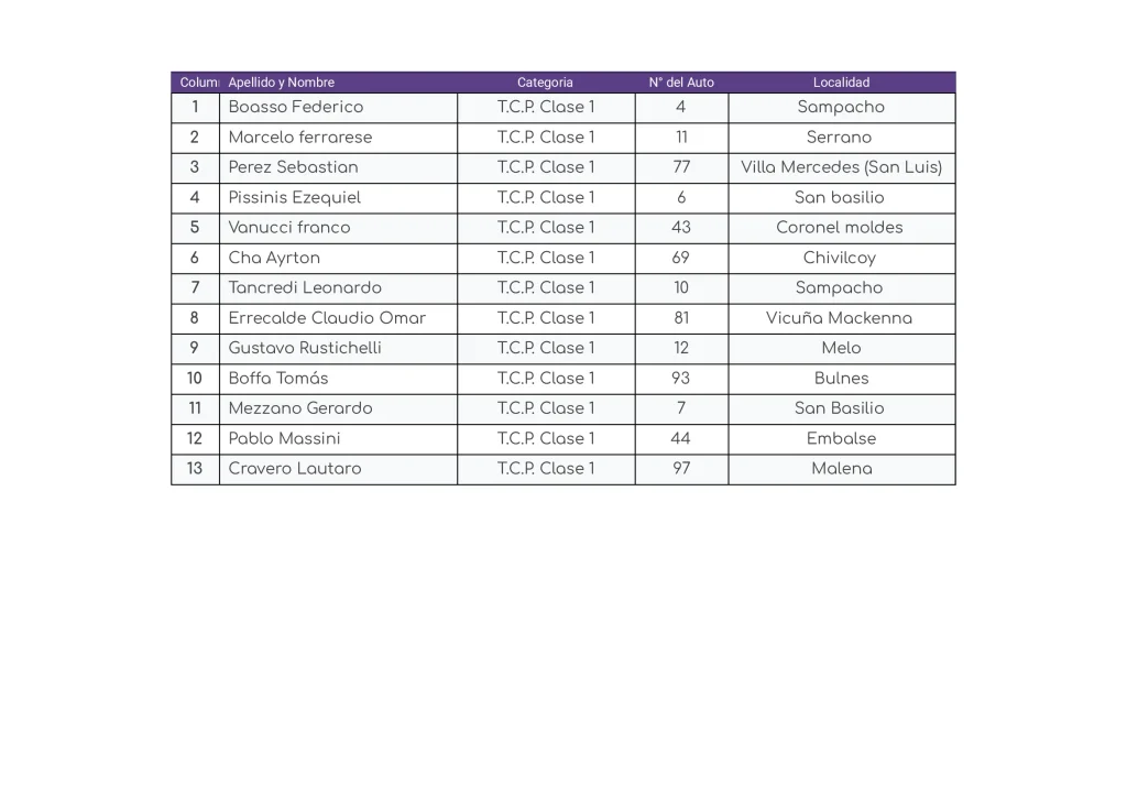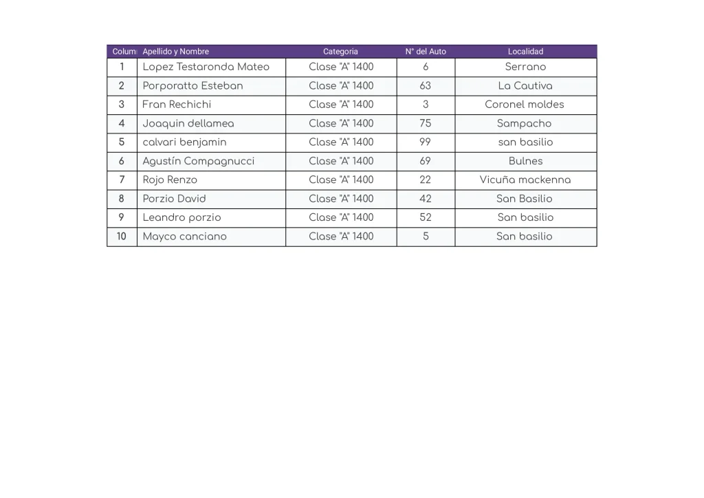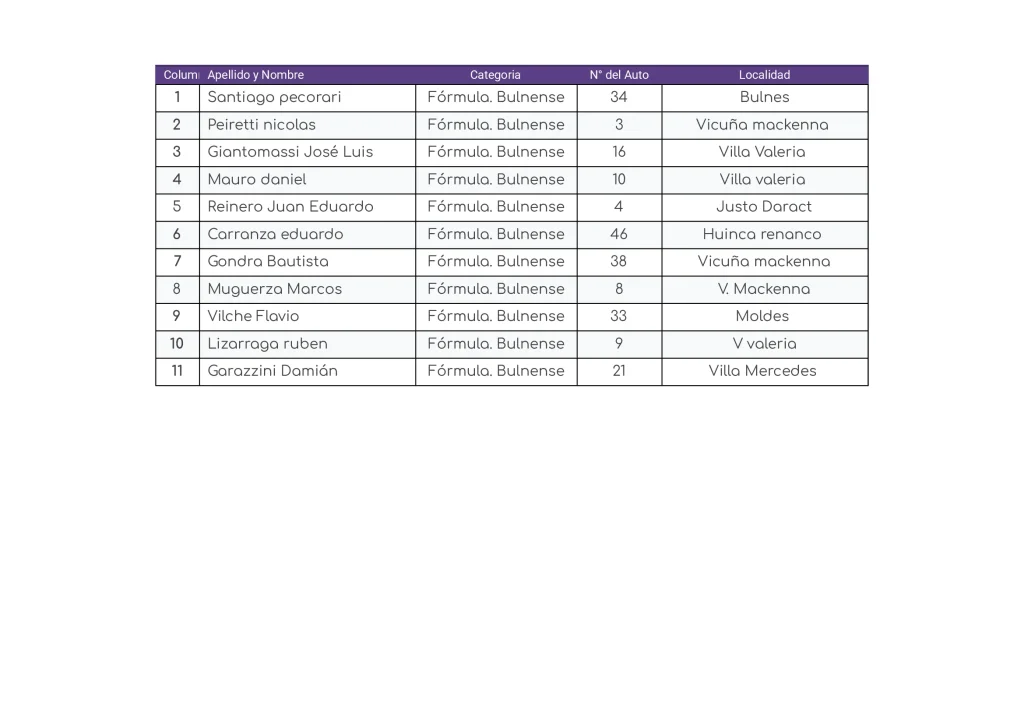 Lista de preinscriptos del Regional Bulnense para Serrano