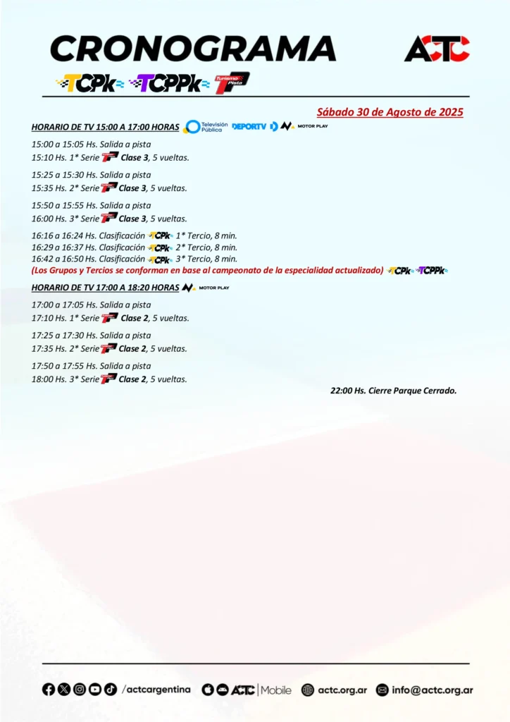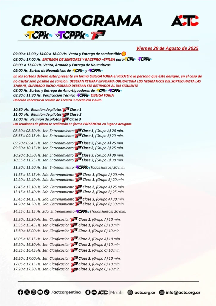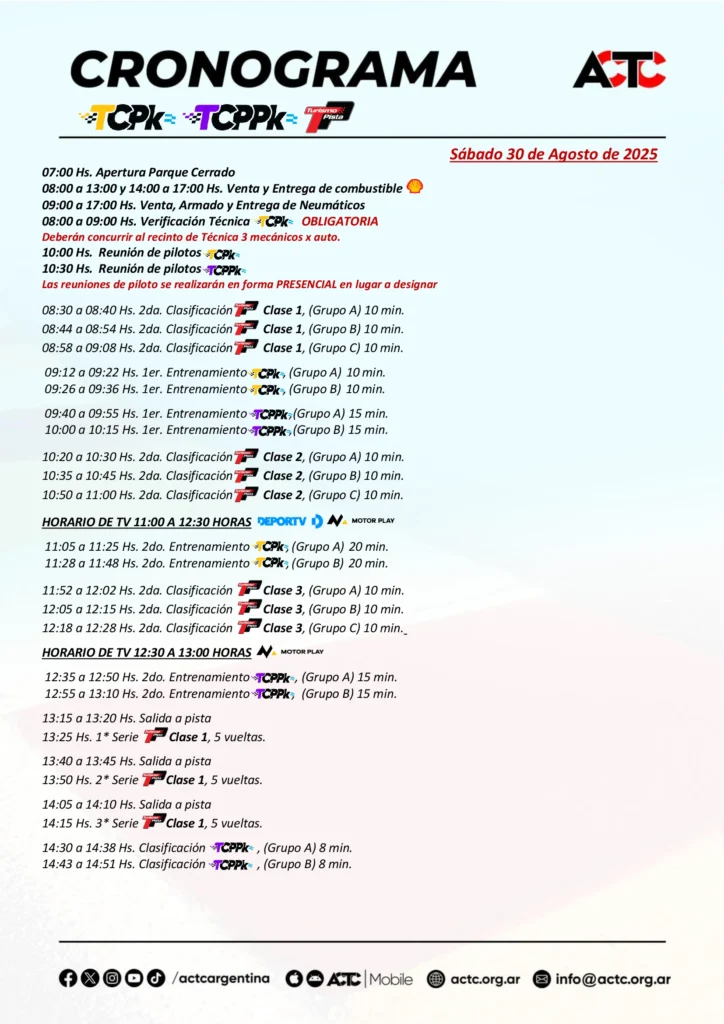 Solo Motores da a conocer el cronograma de actividades para la séptima fecha de la temporada 2025 del TC Pick Up, TC Pista Pick Up y Turismo Pista con sus Clases 1, 2 y 3, a disputarse este fin de semana desde el Autódromo Parque Ciudad de Río Cuarto, Córdoba.