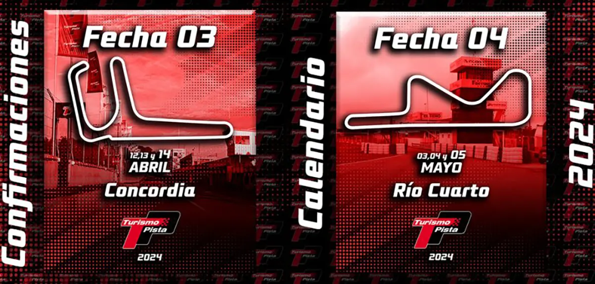 La tercera cita se disputará el fin de semana del 12, 13 y 14 de abril y el circuito de la ciudad de Concordia en la provincia de Entre Ríos, recibirá al Turismo Pista con sus tres clases. Mientras que la siguiente carrera será el 3, 4 y 5 de mayo en tierras cordobesas ya que la categoría ha confirmado el trazado de la ciudad de Río Cuarto para la disputa de la cuarta fecha del calendario.