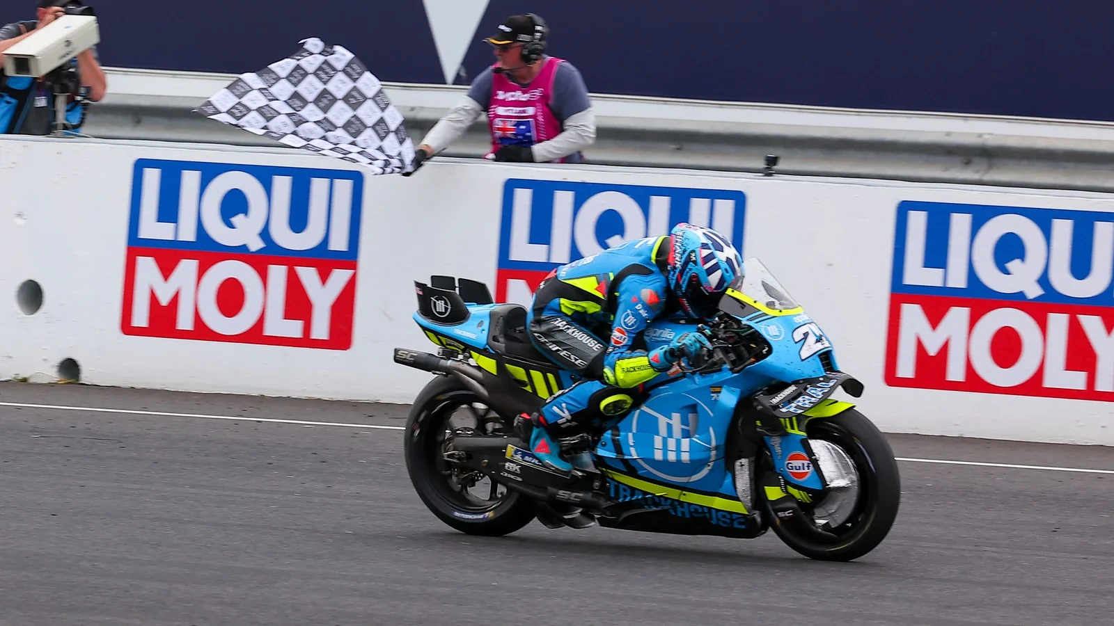 Quien integra el equipo Trackhouse Racing, aprovechó la penalización que debió cumplir dos veces Marco Bezzecchi (Aprilia), y así tomó el liderazgo hasta cumplir con los 27 giros con 1s418 de ventaja sobre la Ducati de Fabio Di Giannantonio; en tanto que Bezzecchi pudo acceder al último escalón del podio tras superar a Álex Márquez (Ducati) quien no pudo defender el puesto ante el excesivo desgaste del neumático trasero.